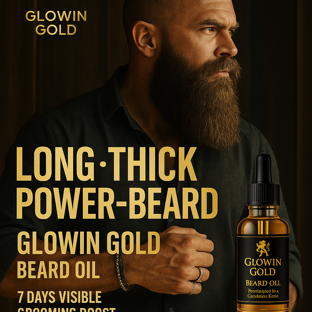 Introducing GLOWIN GOLD Beard Oil, crafted with pure natural oils and a premium gold infusion for powerful beard growth.
